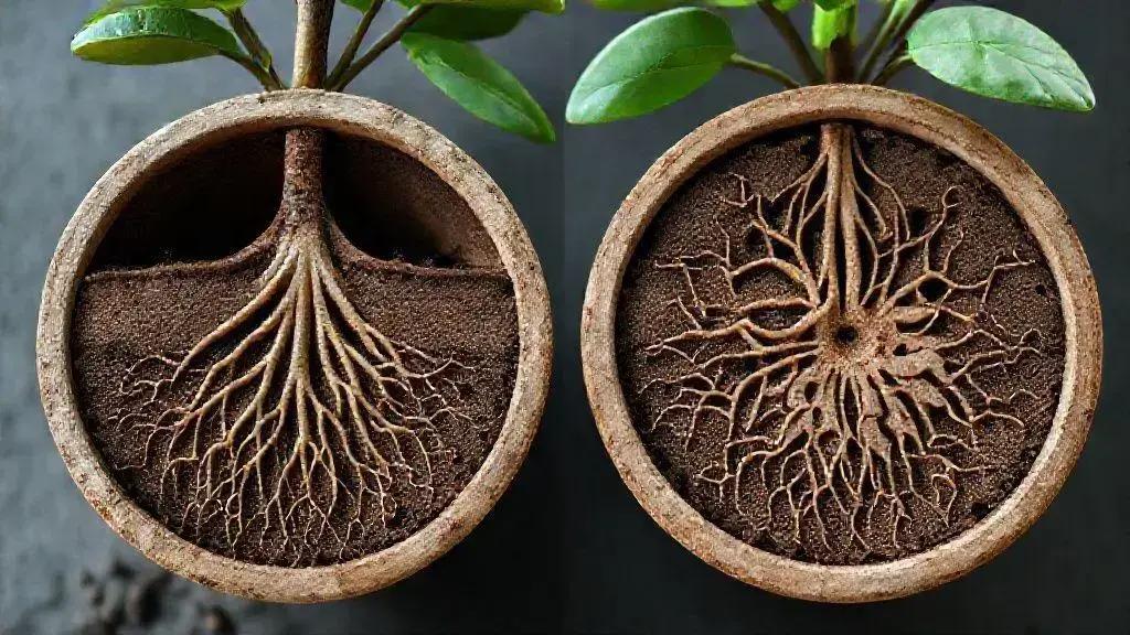 Por outro lado, um vaso redondo pode restringir esse crescimento, pois as raízes tendem a se enrolar em torno de si mesmas. Essa limitação cria um ambiente menos ideal, onde as raízes competem por espaço e recursos, tornando-se um símbolo de ambientes que não colaboram com o desenvolvimento pleno.